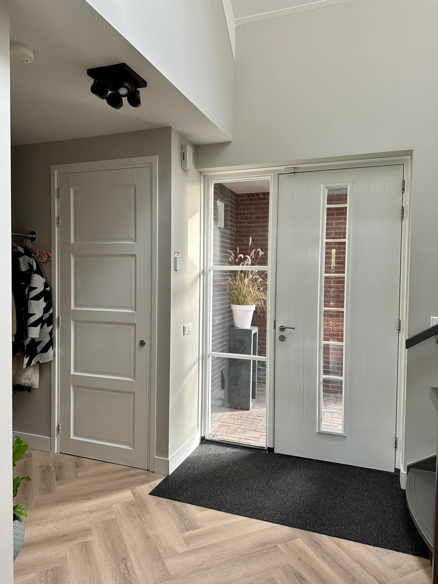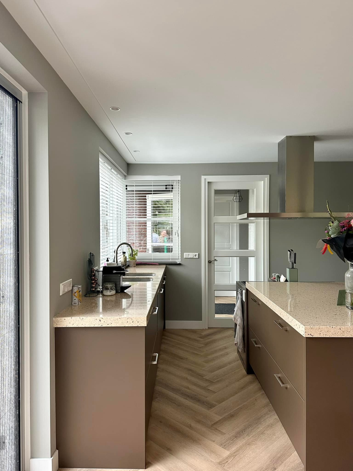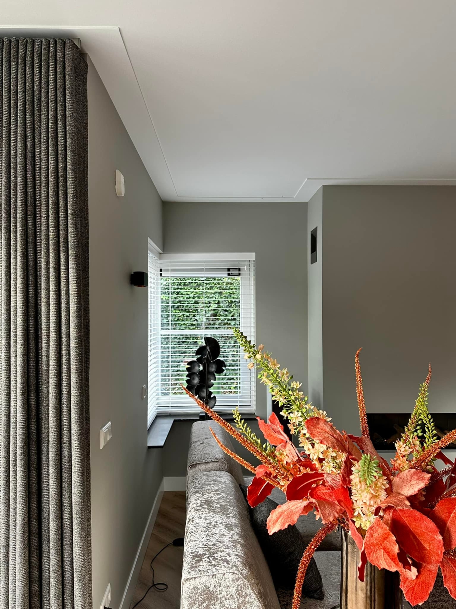 In deze schitterende vrijstaande villa in Veenendaal hebben we de woonkamer volledig strak gestuct. Een bijzonder detail is de afwerking met een platte plint tegen het plafond, wat zorgt voor een strakke en moderne uitstraling.