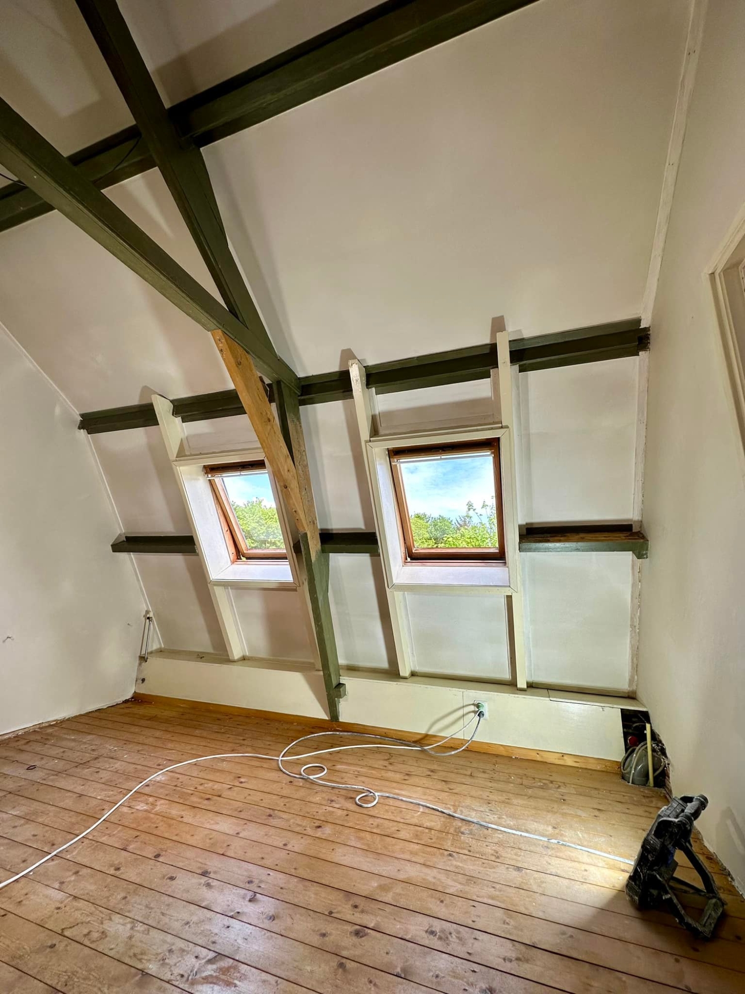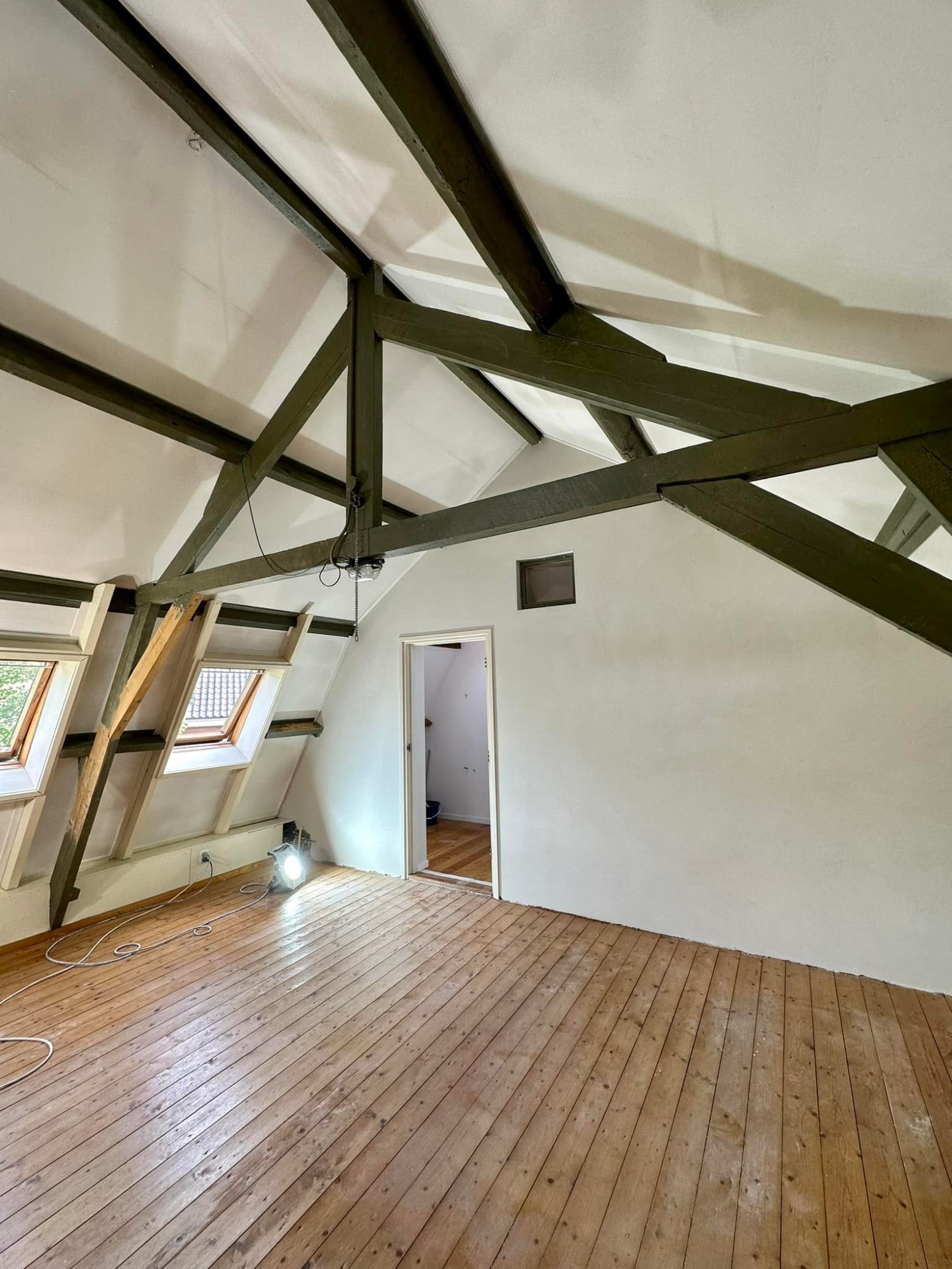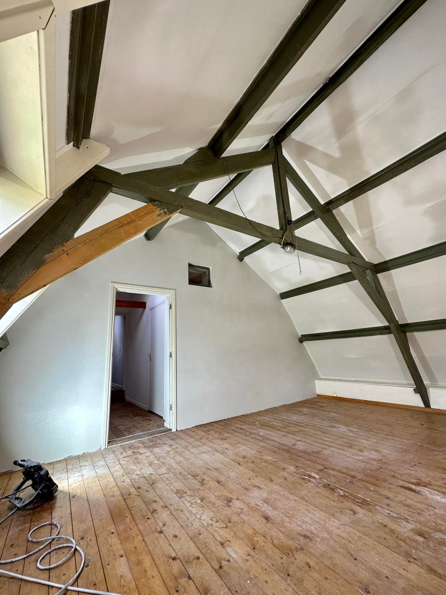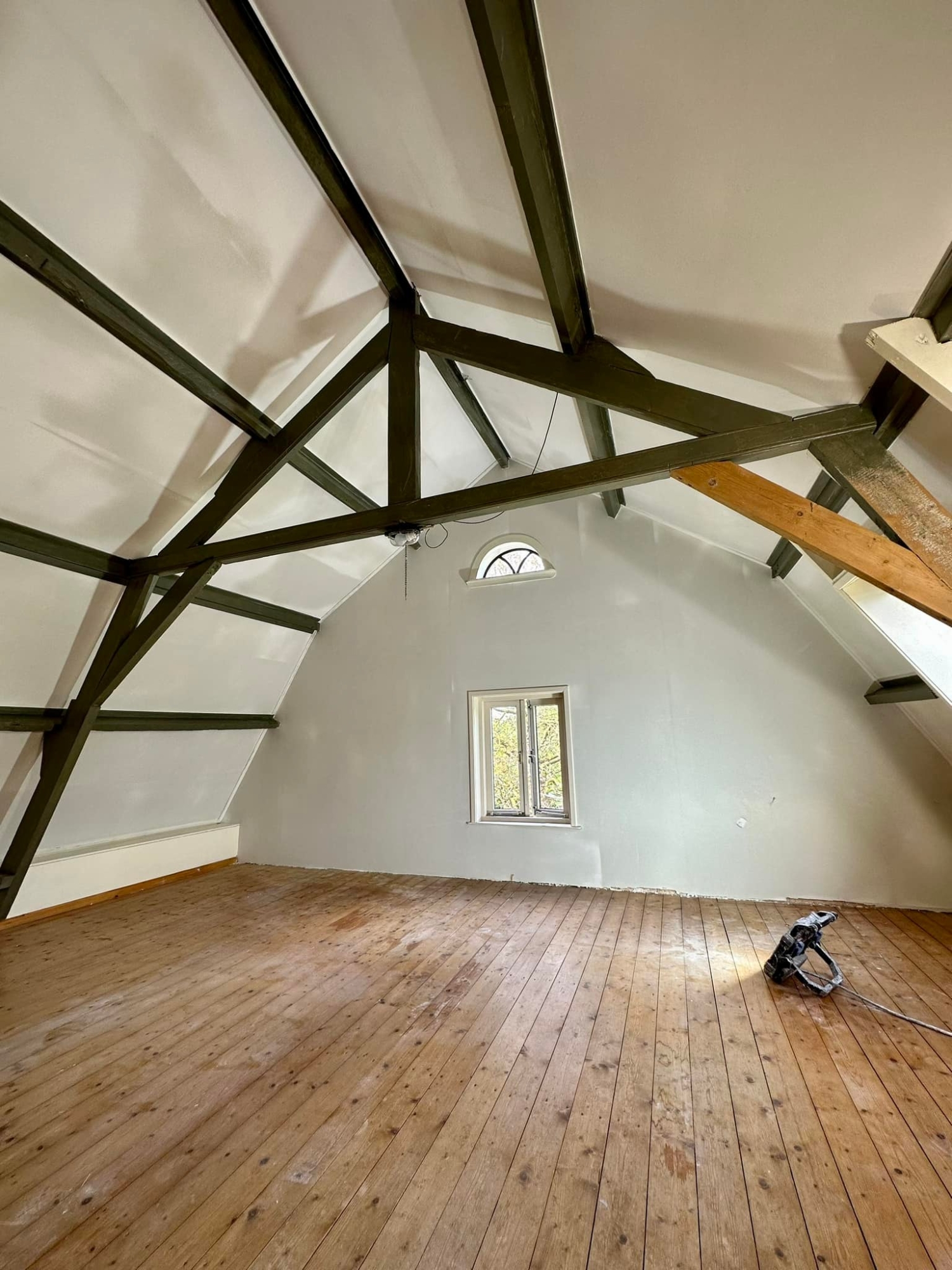 Bij deze prachtige woonboerderij in Kerk-Avezaath, gelegen op de Veluwe, hebben we de wanden en plafonds in de woonkamer, slaapkamer en hal volledig voorzien van strak stucwerk. Het resultaat is een perfect balans tussen modern strak en de authentieke uitstraling van de boerderijwoning.