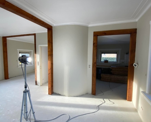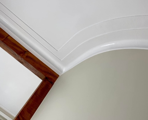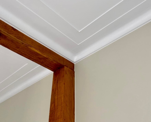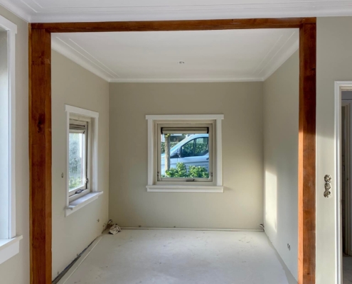 In dit mooie, pittoreske huisje in Alkmaar hebben we de woonkamer, hal en keuken volledig onder handen genomen. Nadat twee muren in de ruimtes waren verwijderd, bleken de oude ornamenten aan het plafond onderbroken. Wij hebben deze met zorg en precisie weer in de oude orde hersteld, zodat de authentieke uitstraling behouden bleef.
