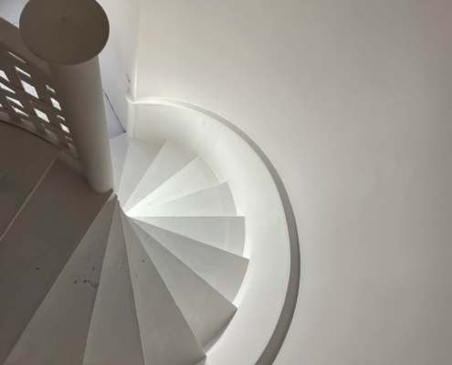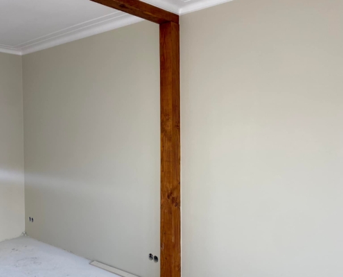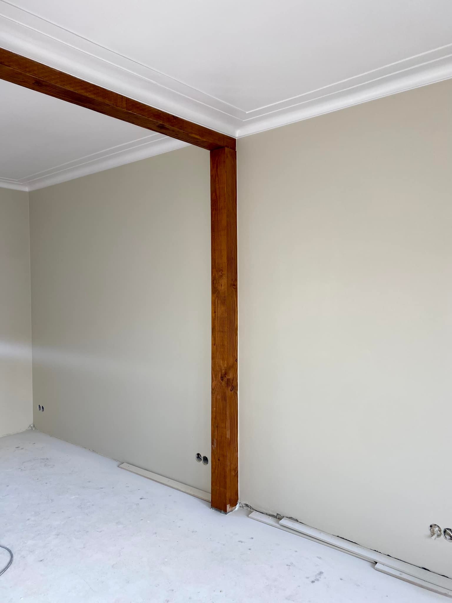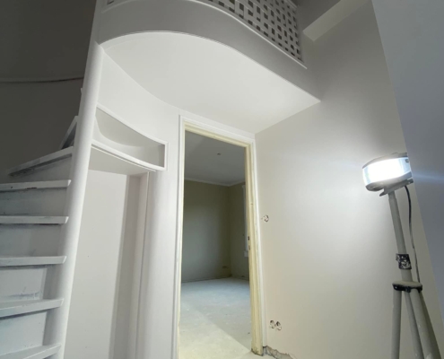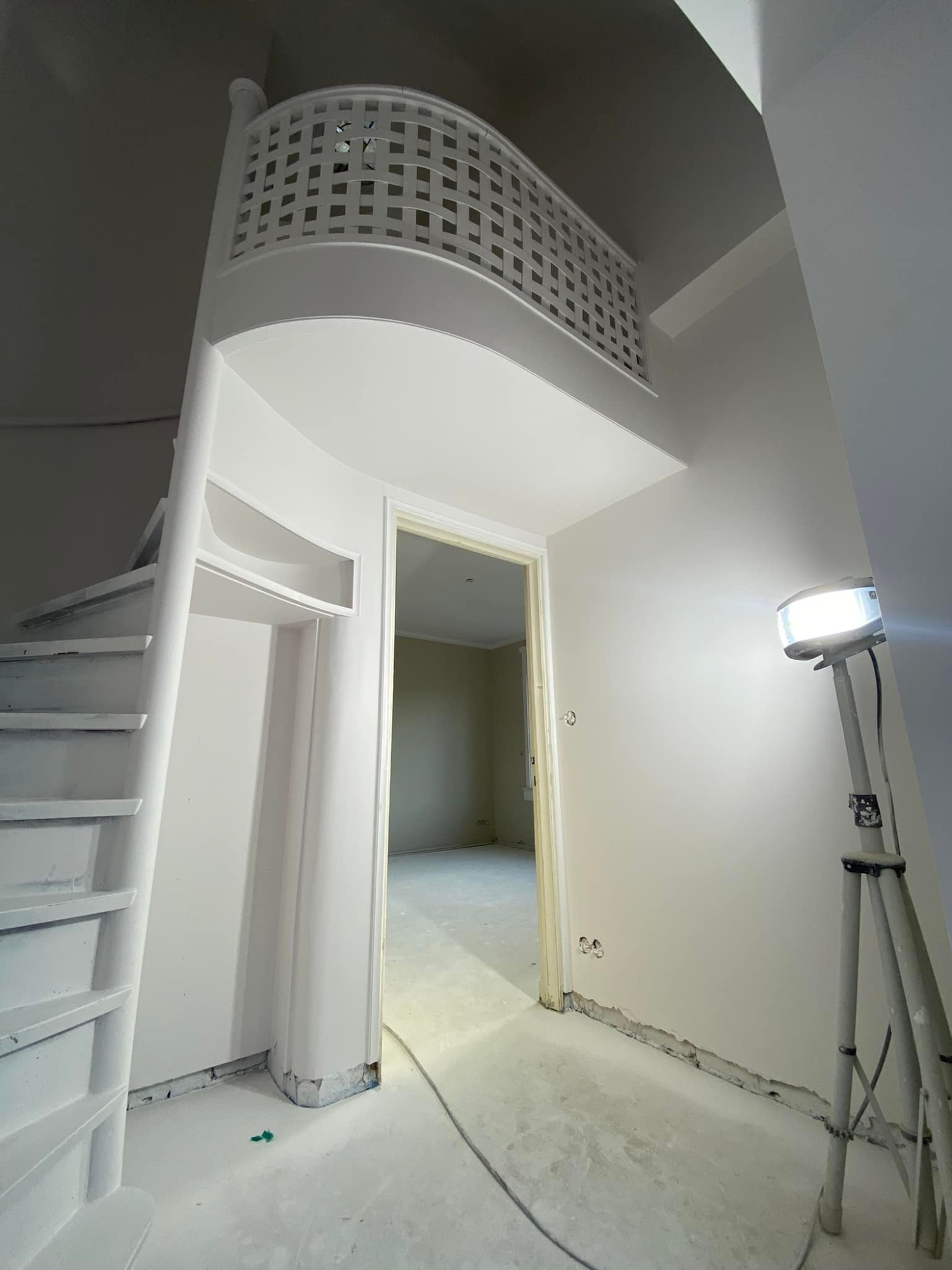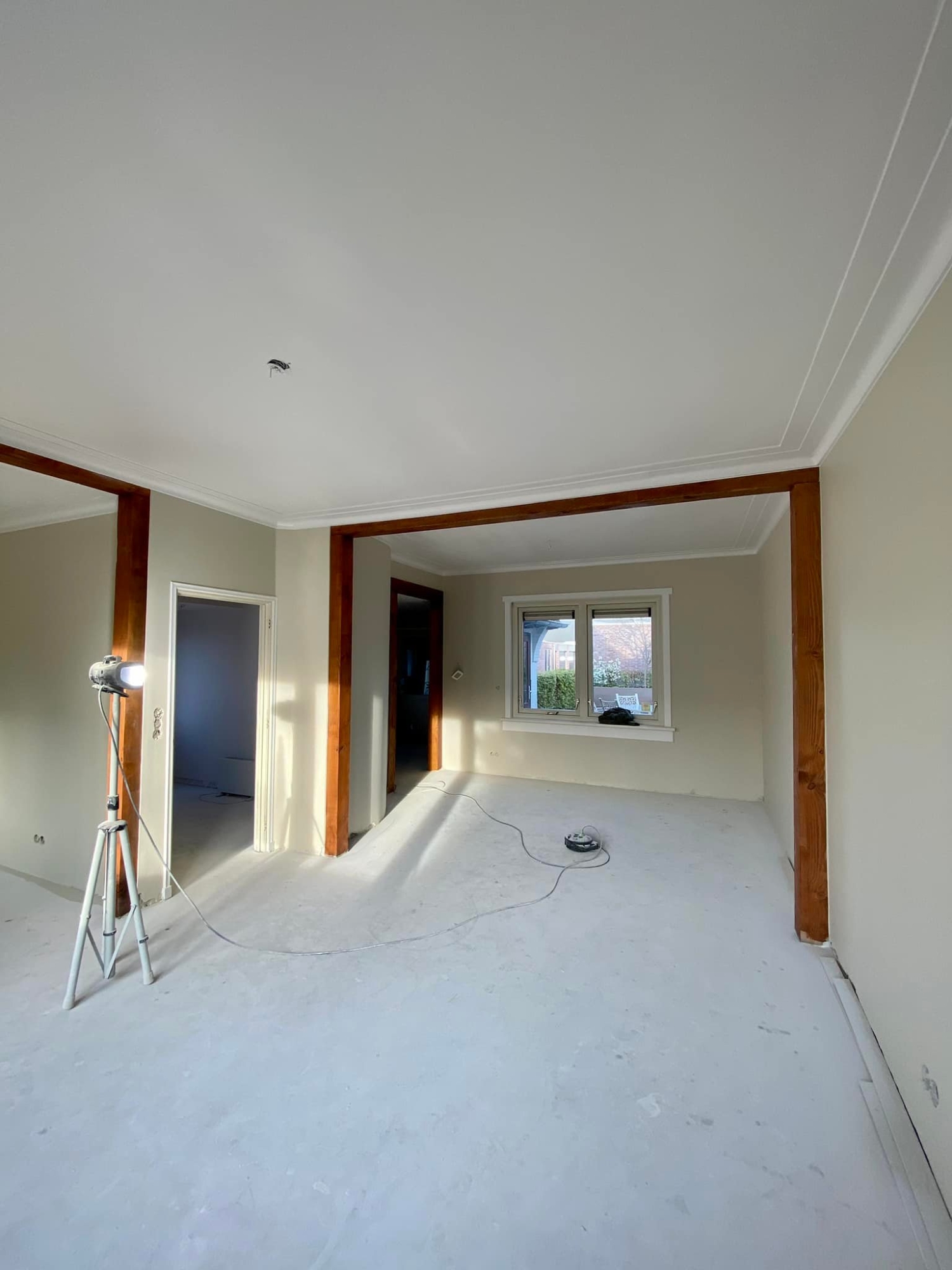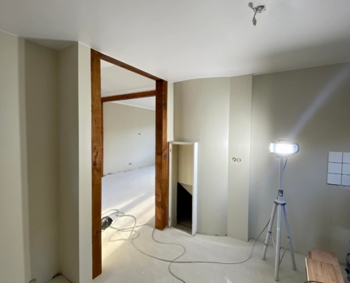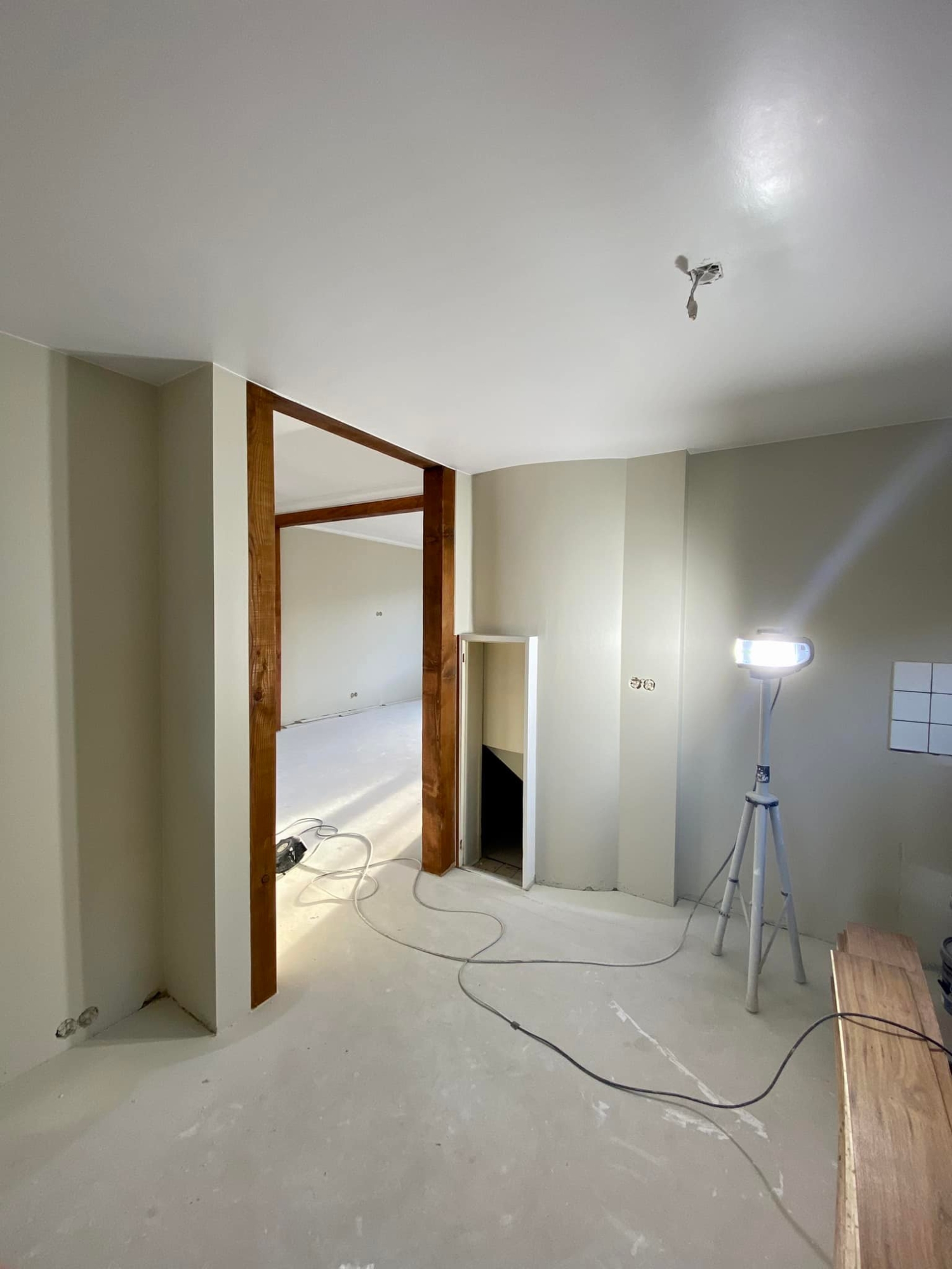 Daarnaast hebben we de wanden en plafonds voorzien van strak stucwerk en alles afgewerkt door het volledig met latex te spuiten. Het resultaat is een superstrak geheel dat zowel modern als authentiek aanvoelt.